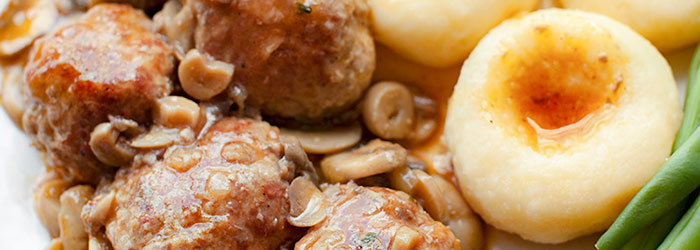Na 2 łyżkach oliwy zeszklić drobno posiekaną cebulę, pod koniec dodać starty czosnek i zrumienić. Połowę zeszklonej cebuli dodać do mięsa (można ją zmielić razem z mięsem), resztę pozostawić na patelni. Do cebuli na patelni dodać pokrojone na plasterki pieczarki (wcześniej oczyścić je gąbką lub opłukać i osuszyć). Doprawić solą, pieprzem i papryką w proszku i smażyć przez ok. 8 minut co chwilę mieszając. Odstawić. Do mięsa z cebulą dodać bułkę tartą, jajko, sos sojowy, sól i pieprz - dokładnie wyrobić. Następnie wilgotnymi dłońmi uformować 18 pulpecików. Obtoczyć je delikatnie w mące pszennej i obsmażyć na oliwie (na patelni lub w garnku). Po podsmażeniu wlać do pulpecików gorący bulion i zagotować. Przykryć i gotować 20 minut, w międzyczasie 2 - 3 razy przewrócić pulpeciki. Dodać podsmażone pieczarki, wymieszać i zagotować. Gotować bez przykrycia przez ok. 5 minut. Na koniec przesiać przez sitko 1/2 łyżeczki mąki ziemniaczanej, wymieszać i zagotować.